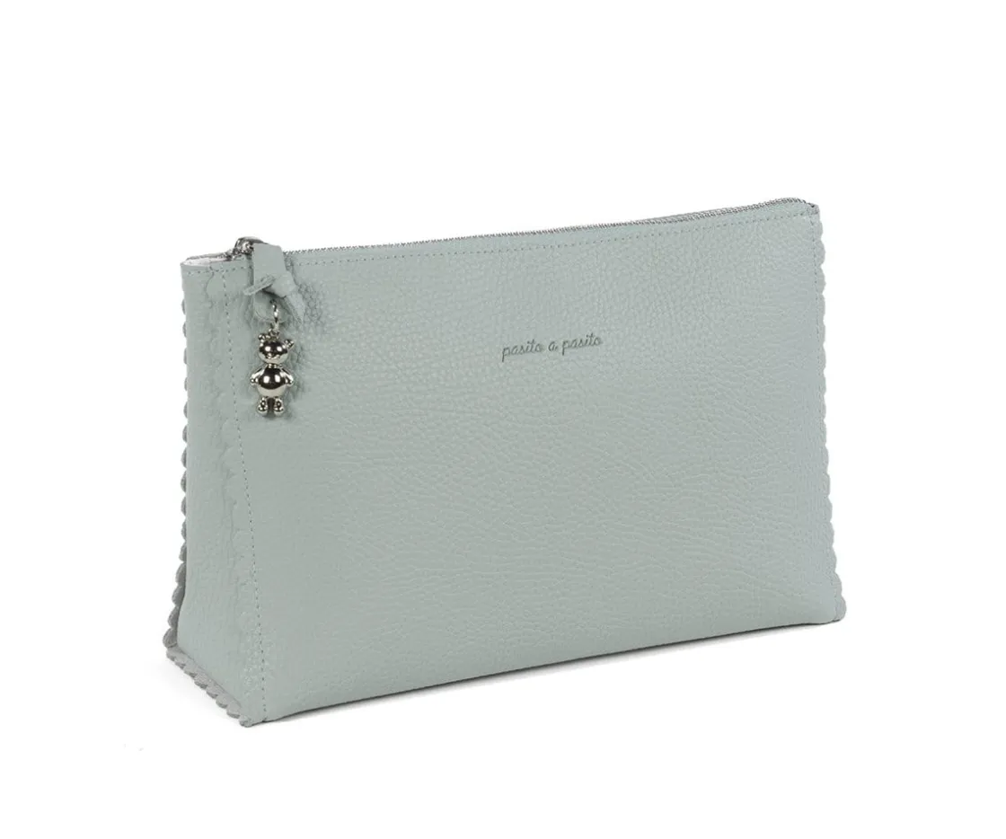 Confeccionado con resistente ecopiel, este elegante neceser ofrece un espacio compacto pero funcional para llevar todos los productos de aseo esenciales de tu bebé. Su diseño único y su forma adaptada lo hacen fácil de colocar en el bolso, manteniendo todo organizado y a mano.