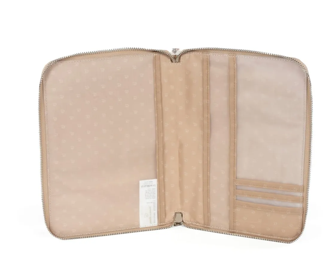 Este práctico portadocumentos es el compañero perfecto para mantener todos los papeles importantes de tu bebé organizados y protegidos. Hecho con ecopiel suave y resistente, cuenta con útiles compartimentos interiores y un cierre de cremallera para garantizar que todo esté seguro.