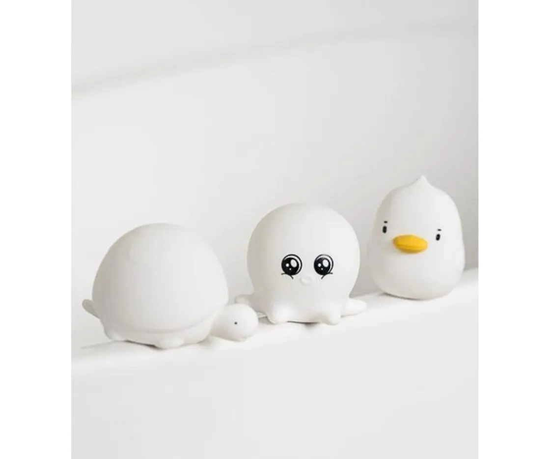 - Incluye 3 mini lámparas: un pato, un pulpo y una tortuga
