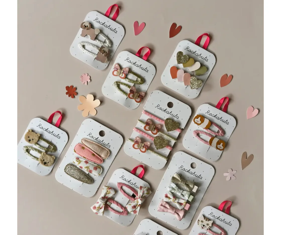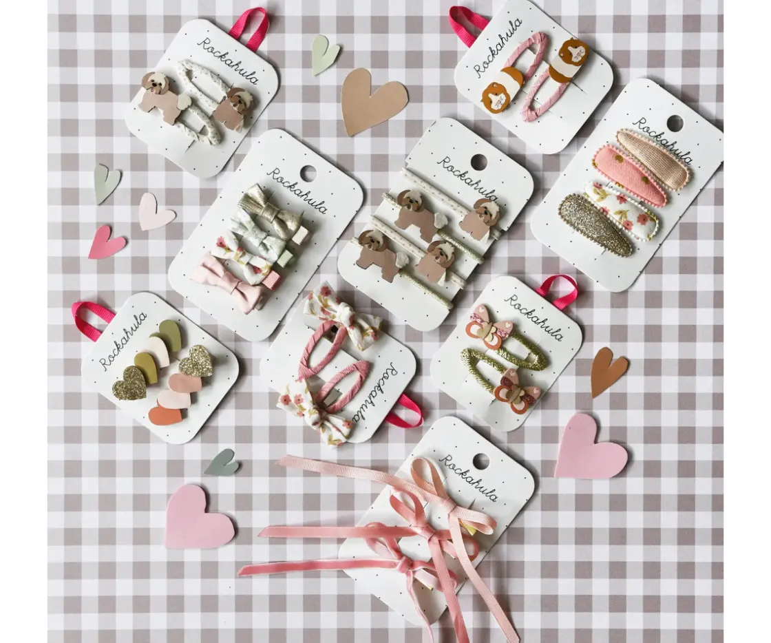 El Elsie Fabric Clip Set de Rockahula incluye 4 preciosas pinzas de tela, cada una forrada con estampados florales y tonos suaves que combinan perfectamente entre sí.