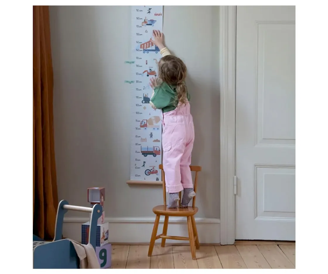 Hecha de resistente papel de 250 gramos y montada entre dos soportes de madera el adorable medidor de altura de Sebra será un accesorio estupendo para colocar en el cuarto de juegos o habitación infantil de tu peque.