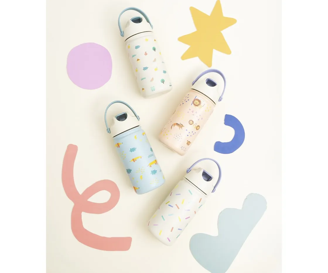 Esta botella de acero inoxidable con capacidad de 420 ml de The Cotton Cloud, es a prueba de fugas cuando está abierta y cerrada, lo que la hace perfecta para que los peques la lleven a todas partes. Cuenta con un asa y una boquilla con pajita de silicona suave, y además, ¡mantiene el agua fría para disfrutar del verano!