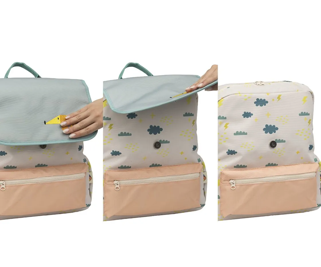 Las originales mochilas The Cotton Cloud, están diseñadas para niños en el curso escolar, fabricadas de RPET, un material sostenible a partir de botellas de plástico recicladas.