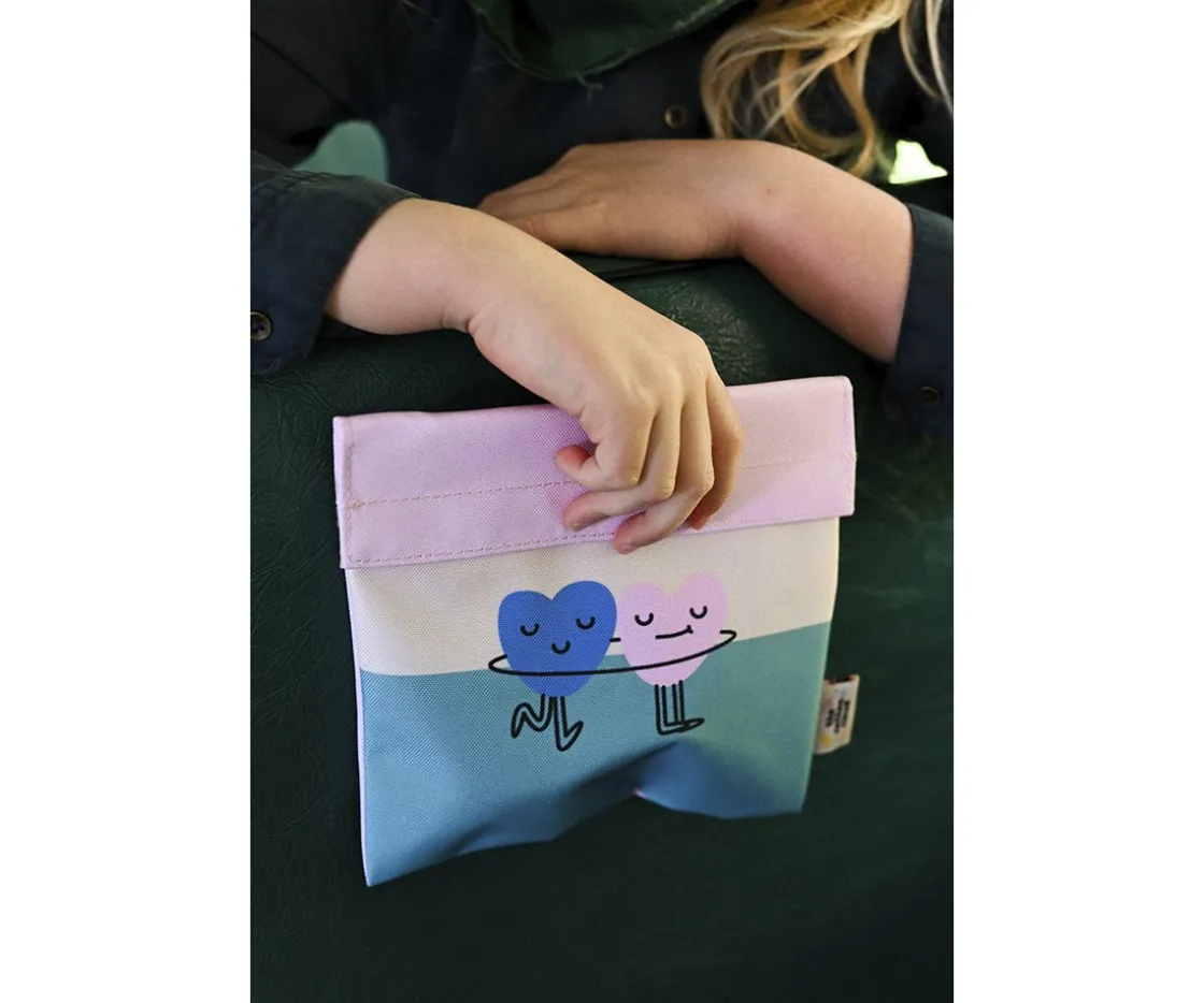 Bolsita porta alimentos The Cotton Cloud con diseño Dancing Hearts, divertido y original. Tiene la medida perfecta para llevar sándwich, frutas o snacks.