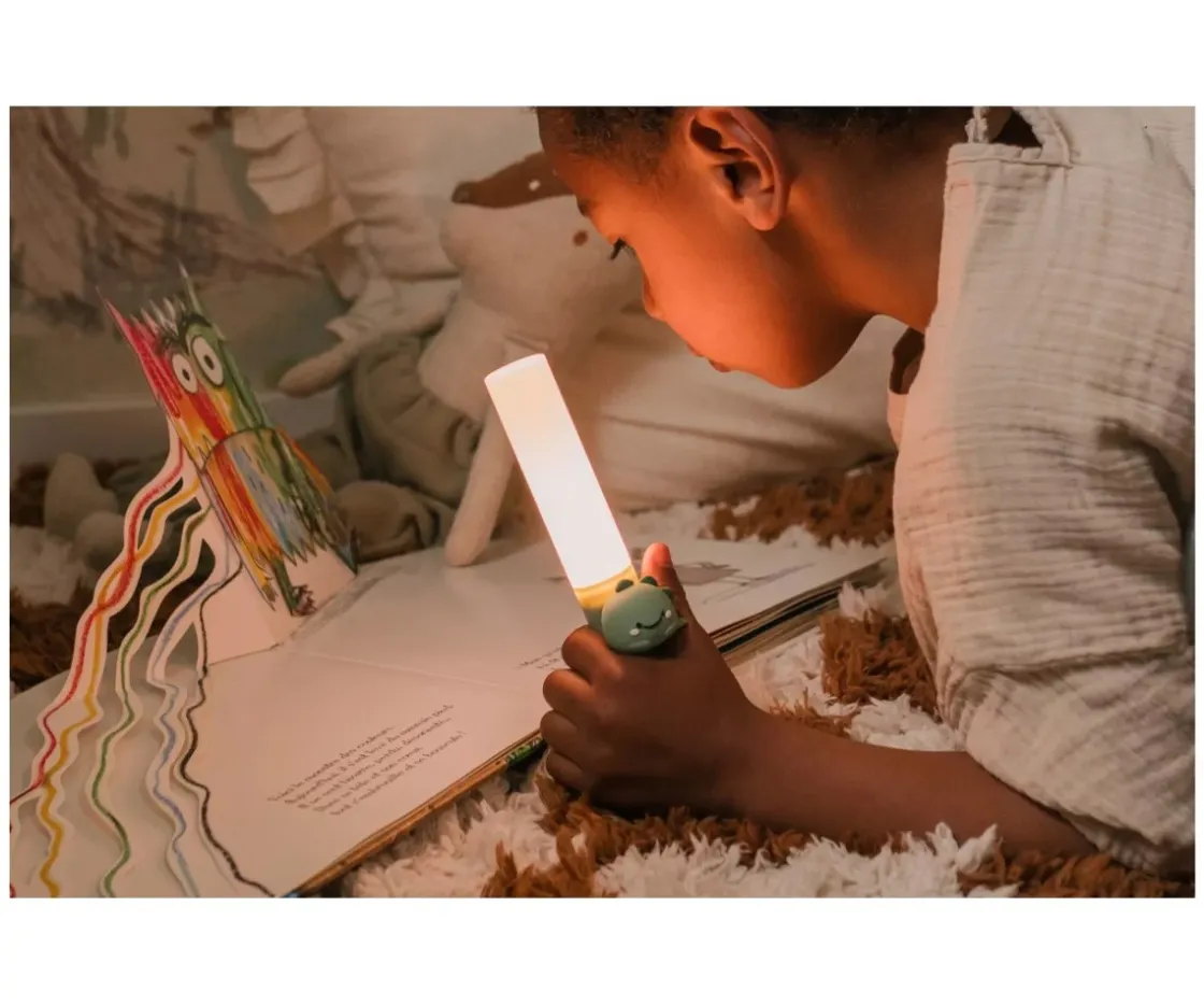 Una encantadora luz nocturna con forma de dinosaurio que aporta seguridad, confort y diversión durante el día y la noche.