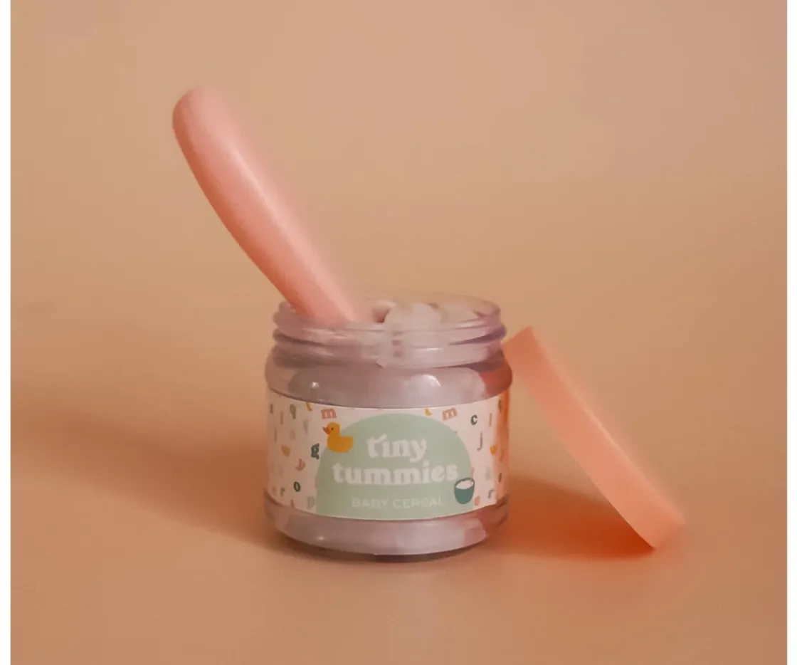 A todos los peques les encanta imitar a los mayores y con el set mi primer Tiny Tummies, formado por un tarro de comida, un biberón mágico y una cuchara, tendrás todo lo necesario para ello.
