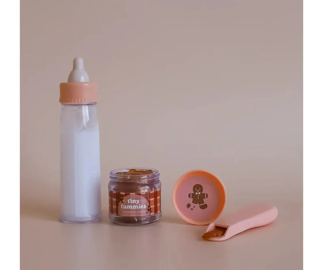Tiny Harlow trae el pack de regalo perfecto para tus muñecos de estas fiestas navideñas. El set incluye un biberón mágico, un tarrito de gelatina con sabor a pastel de Navidad y una cuchara.