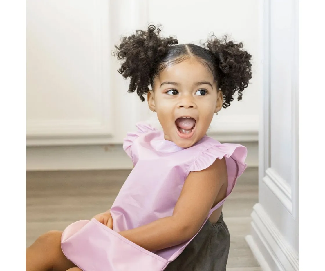 Es muy fácil de poner y quitar, gracias a su cierre trasero de velcro a prueba de tironoes. Además cuenta con un bolsillo grande abierto para recoger los derrames y alimentos.