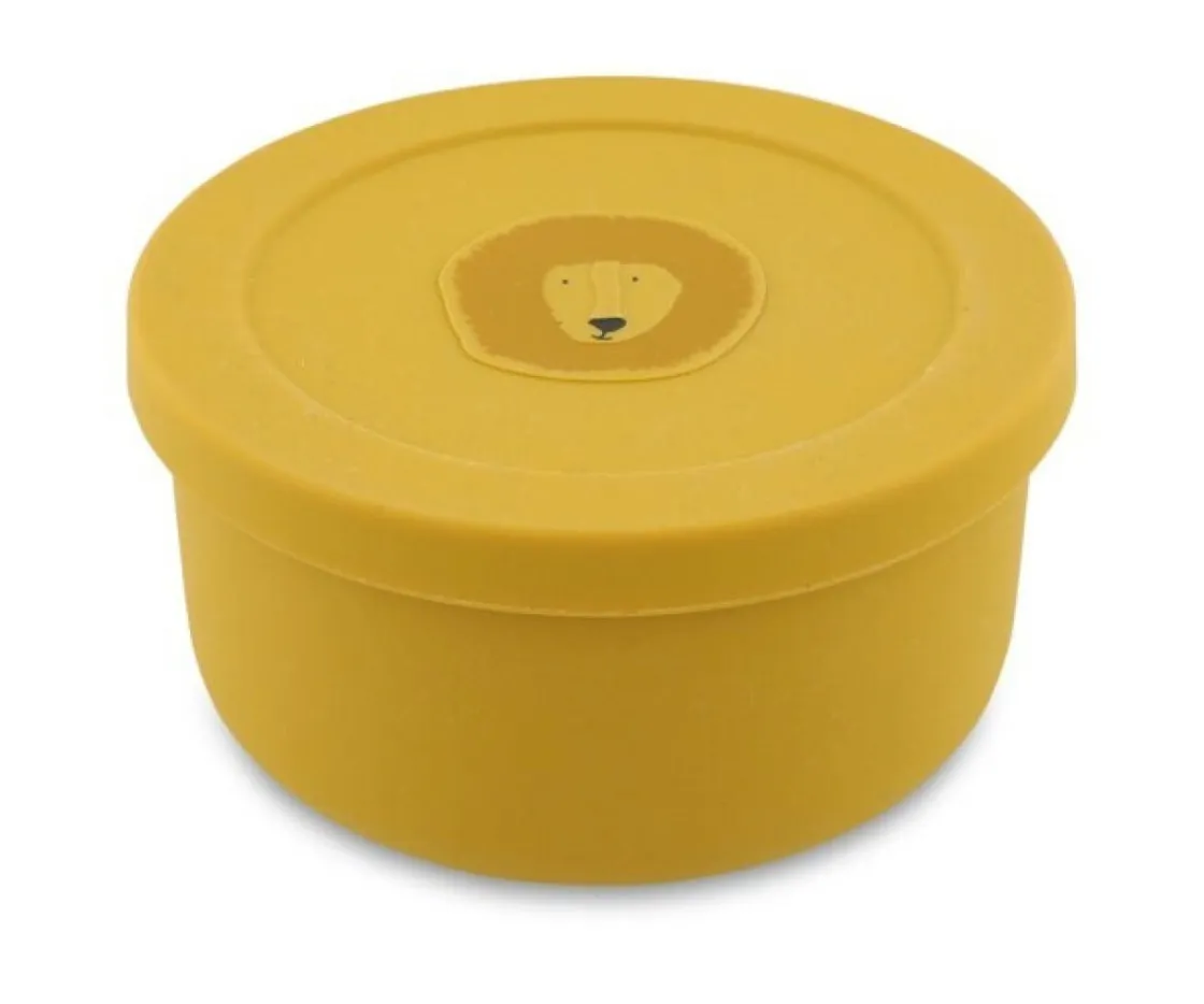 Cuenco con tapa de silicona de la colección Mr. Lion de Trixie, diseñado para durar y resistir golpes. La tapa proporciona comodidad al transportar alimentos.