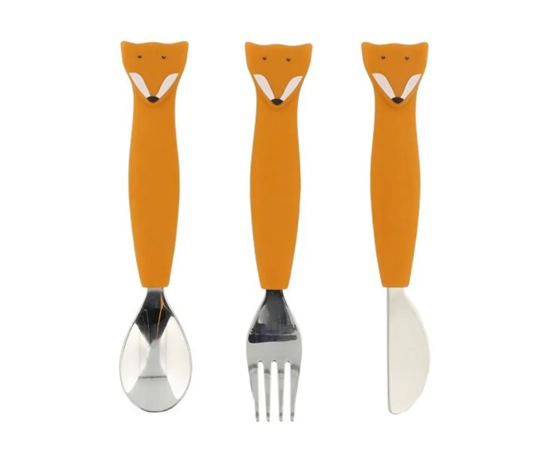 Set de 3 cubiertos de silicona de la colección Mr. Fox de Trixie para comer, ideales para alimentar a tu bebé.