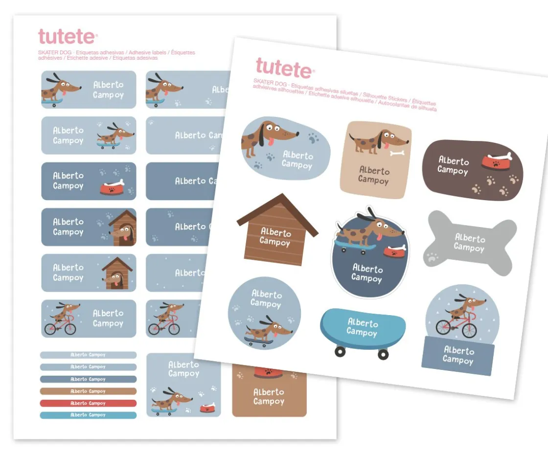 Tutete 29 Pegatinas para Objetos Skater Dog