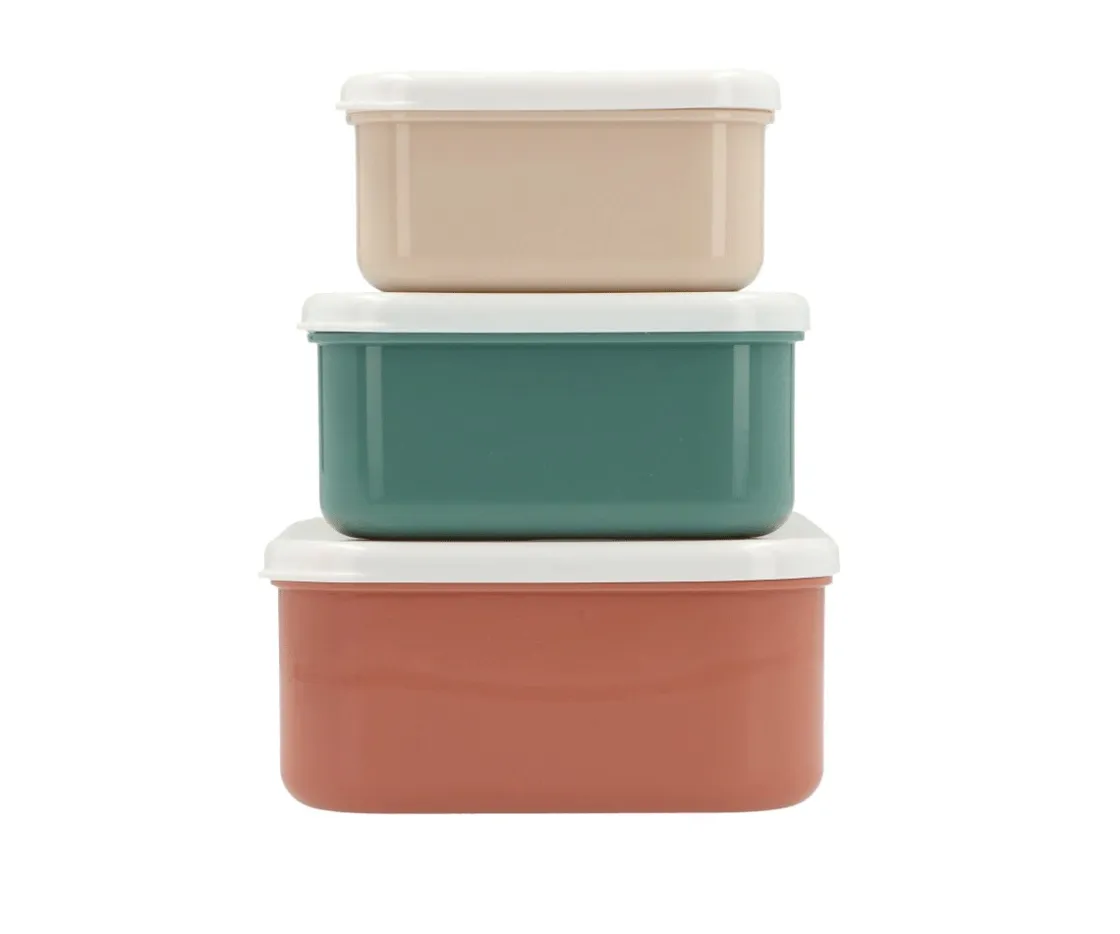 Cada cajita tiene un tamaño diferente para adaptarse a todo tipo de snacks o comidas, y al guardarse una dentro de otra, ocupan muy poco espacio al almacenarlas. ¡Un imprescindible para las mochilas escolares!
