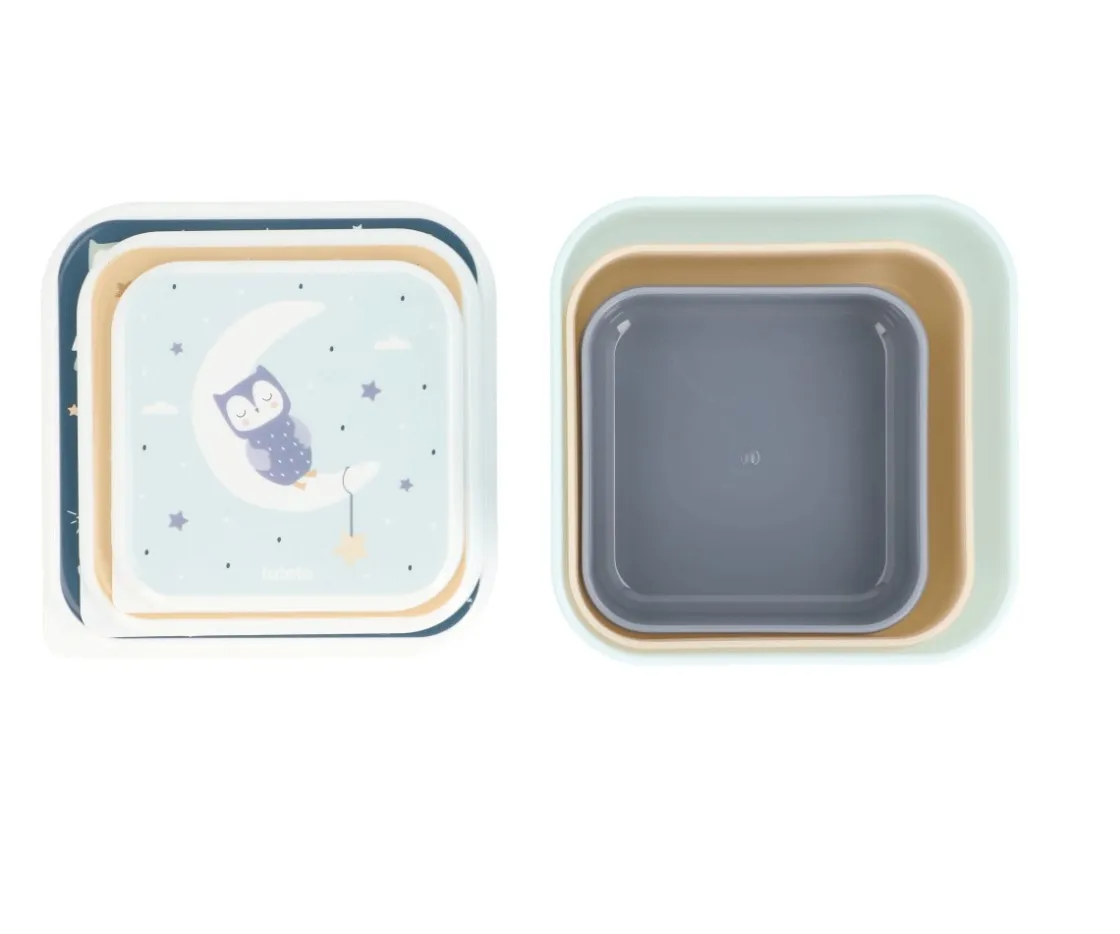 Cada cajita tiene un tamaño diferente para adaptarse a todo tipo de snacks o comidas, y al guardarse una dentro de otra, ocupan muy poco espacio al almacenarlas. ¡Un imprescindible para las mochilas escolares!