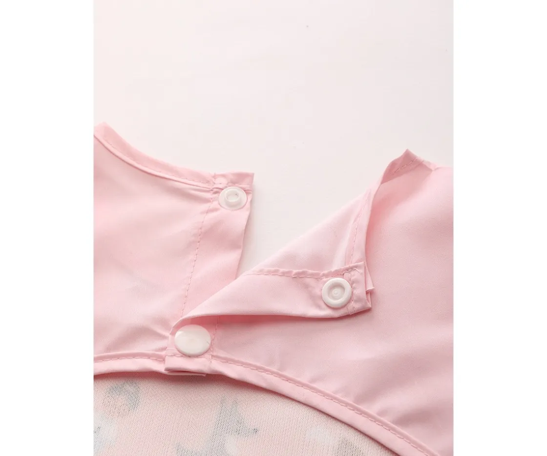 Fabricado en poliéster con acabado waterproof, lo que evita que líquidos y restos de comida traspasen. Ideal para el día a día, tanto en casa como en la guardería, su diseño con mangas largas ofrece una cobertura completa, evitando manchas en brazos y pecho.