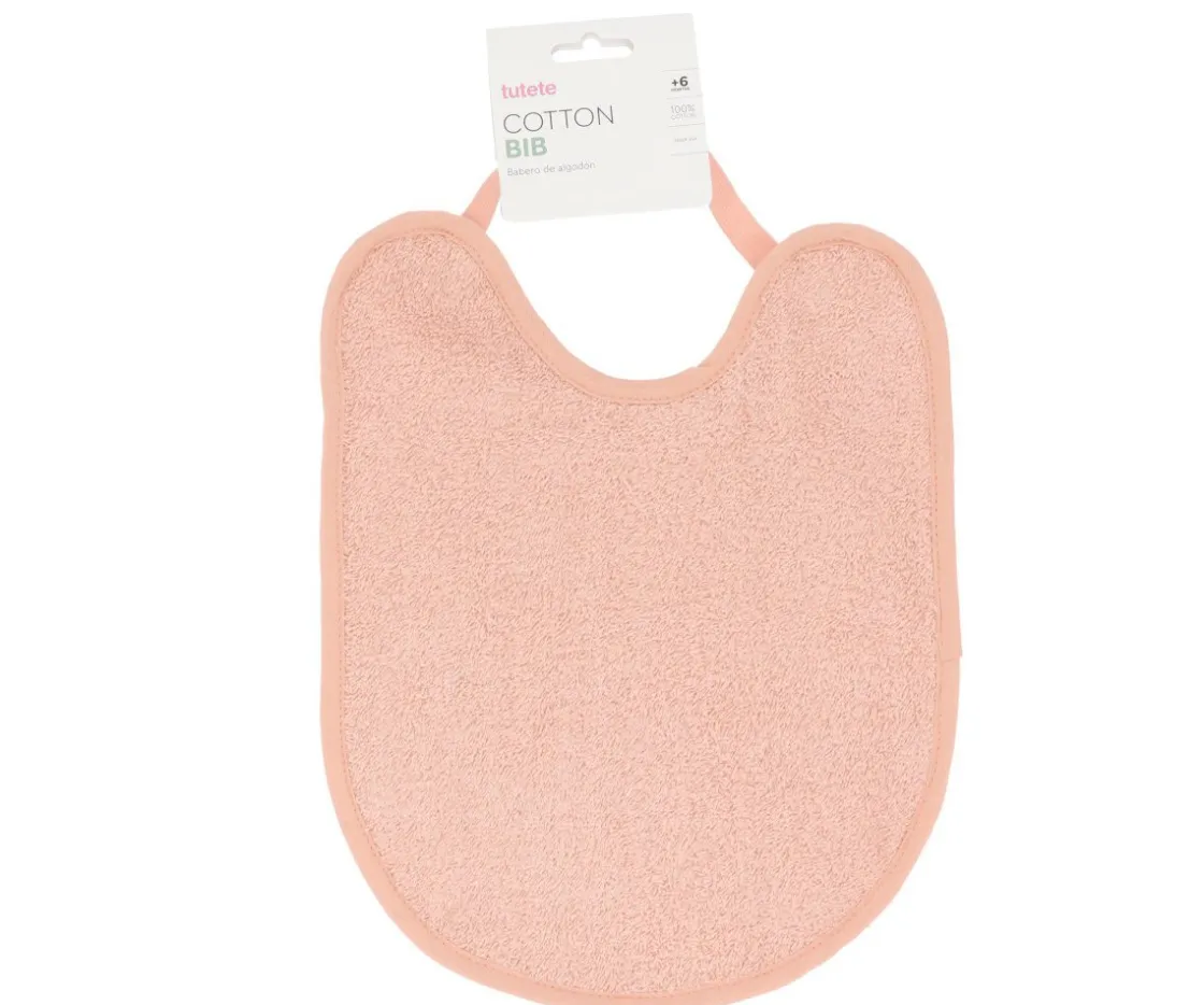 Tutete presenta este original babero de algodón con una cara de toalla de rizo y la otra plástificada con EVA para evitar que traspase la comida o los líquidos a la ropa cuando cae sobre ella.