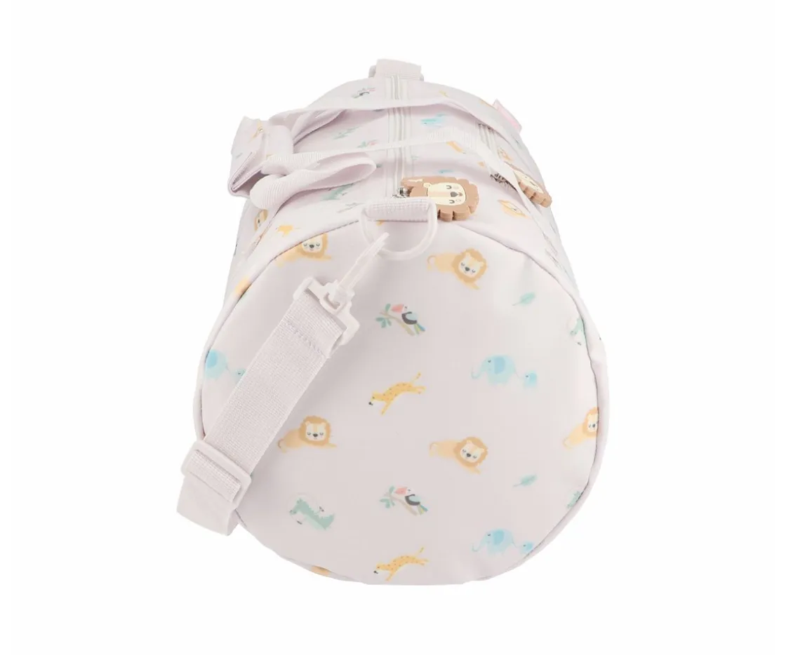 Fabricada en materiales resistentes y duraderos es ideal para soportar el día a día de los peques. Cuenta con asas cortas que se pueden unir para ofrecer un transporte práctico y cómodo, un asa larga para que puedas llevarla al hombro o cruzada y un bolsillo exterior de cremallera donde puedes guardar pequeños objetos y tenerlos accesibles.