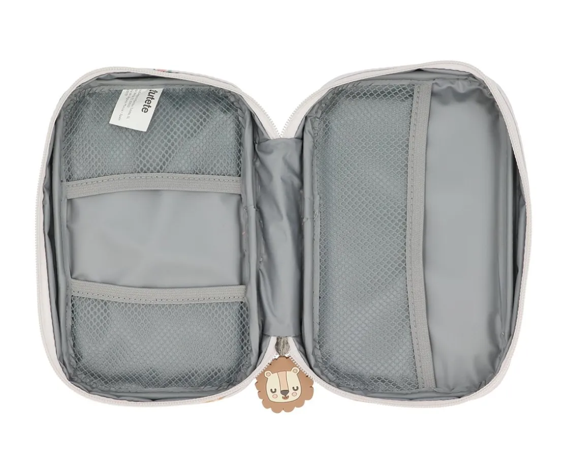 Su interior está fabricado para proteger los artículos de la humedad o daños externos e incluye varios bolsillos para tener todo bien ordenado, tiene el tamaño perfecto para llevarla a cualquier lugar ya sea en la mochila o en el bolso.