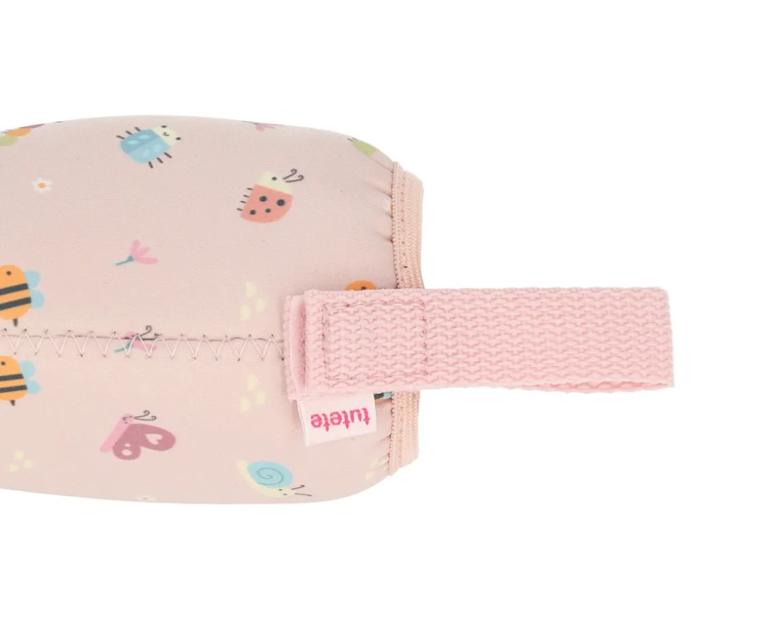 Funda de neopreno para proteger la botella de acero decorada con los personajes de las nuevas colecciones de la Vuelta al Cole Tutete 2024.