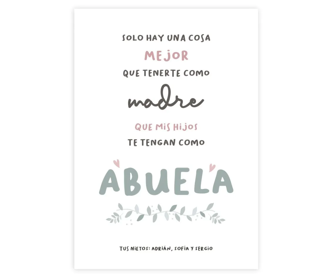 Esta lámina es ideal para personalizar con el nombre del peque para regalar a la abuela de una manera distinta, original y cariñosa.