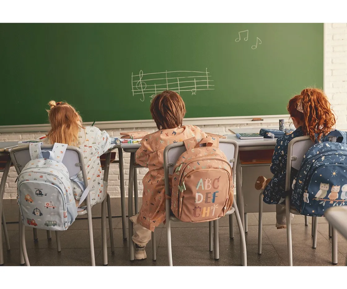 Mochila Escolar Mediana Personalizable de la Colección Vuelta al Cole Funny Letters de Tutete que puedes personalizar con el llavero personalizable que incluyen de regalo.