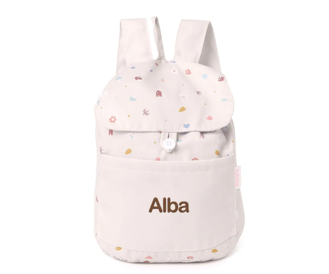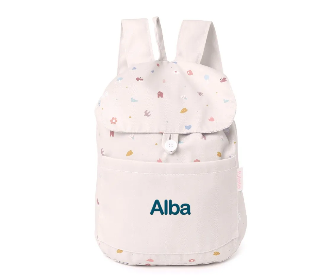 Su primera mochila: ligera, práctica y con su nombre bordado.