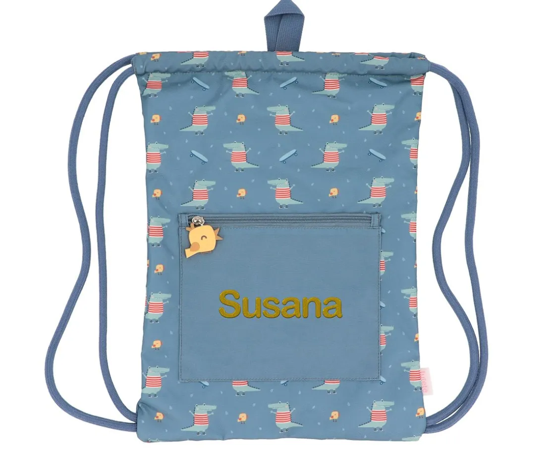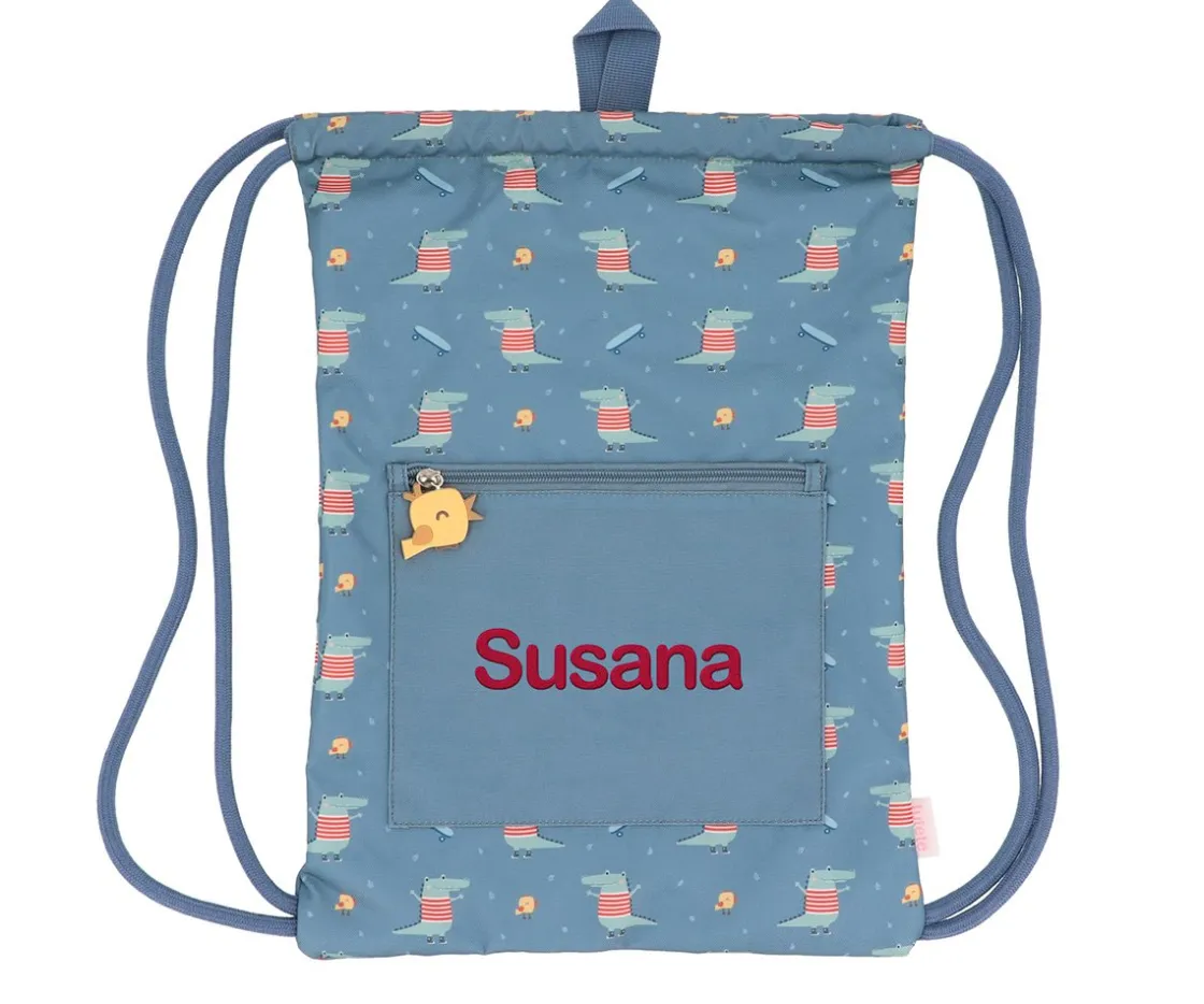 Cuenta con un práctico bolsillo frontal con cremallera, para pequeños objetos, que además puedes personalizar con el nombre de tu peque sin que la impermeabilidad de la mochila se vea afectada.