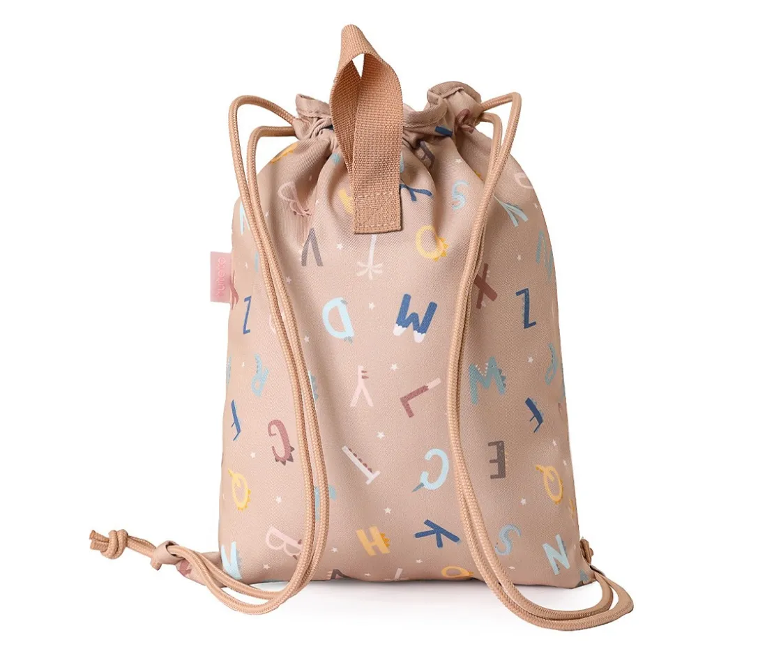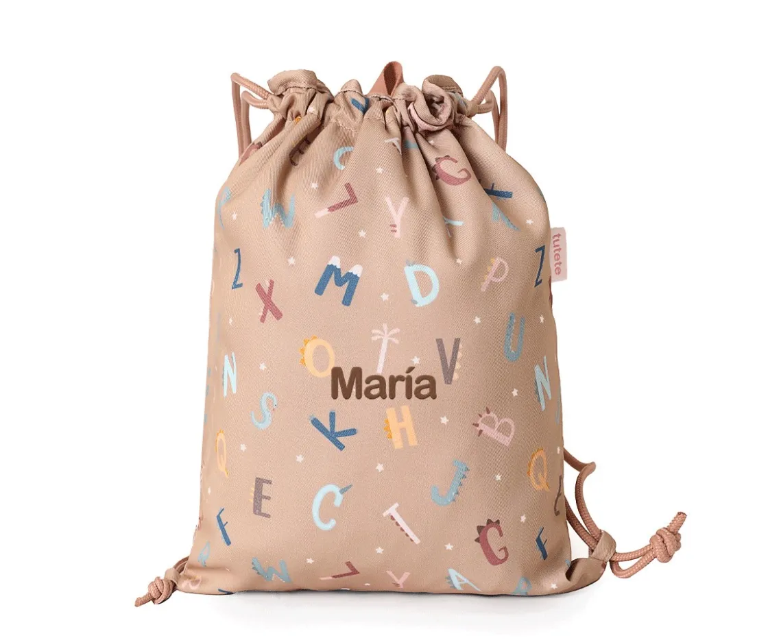 Mochila Saco de Tela Personalizable de la Colección Vuelta al Cole Funny Letters de Tutete.