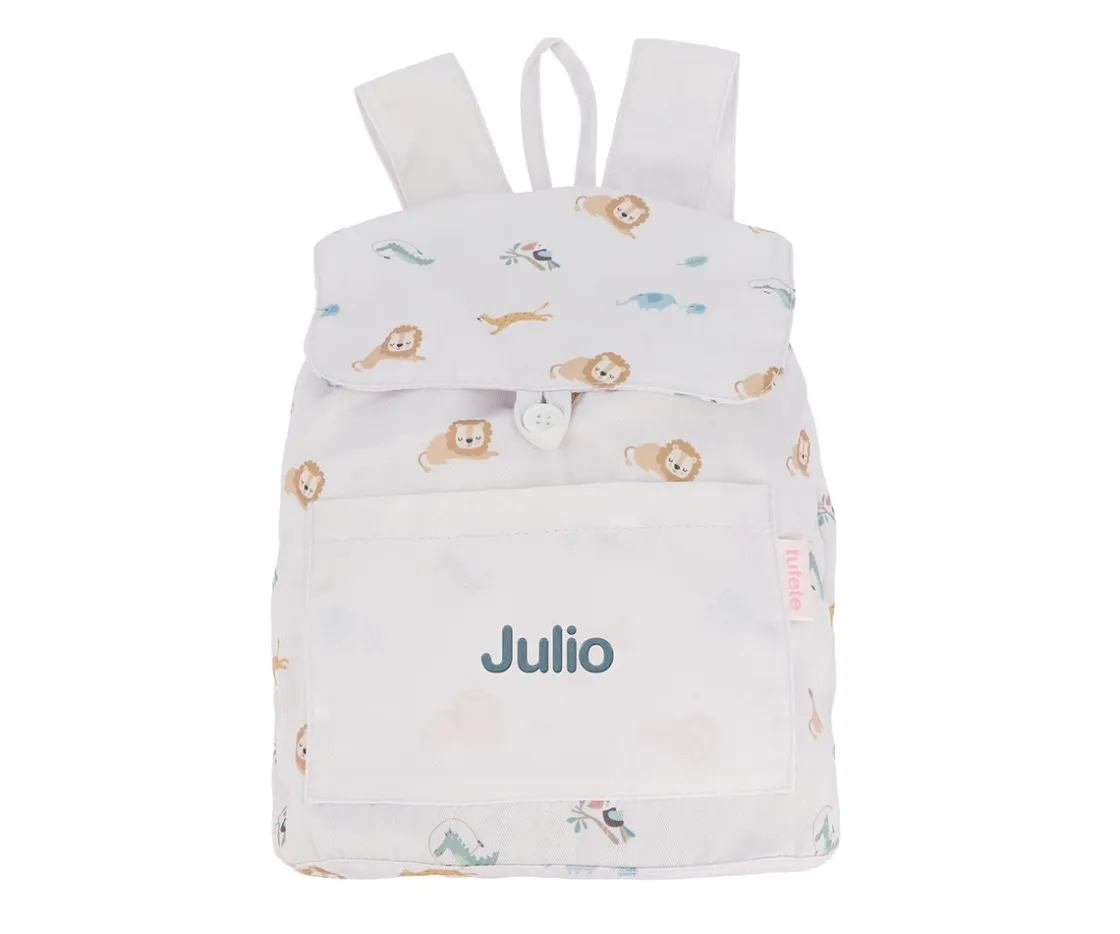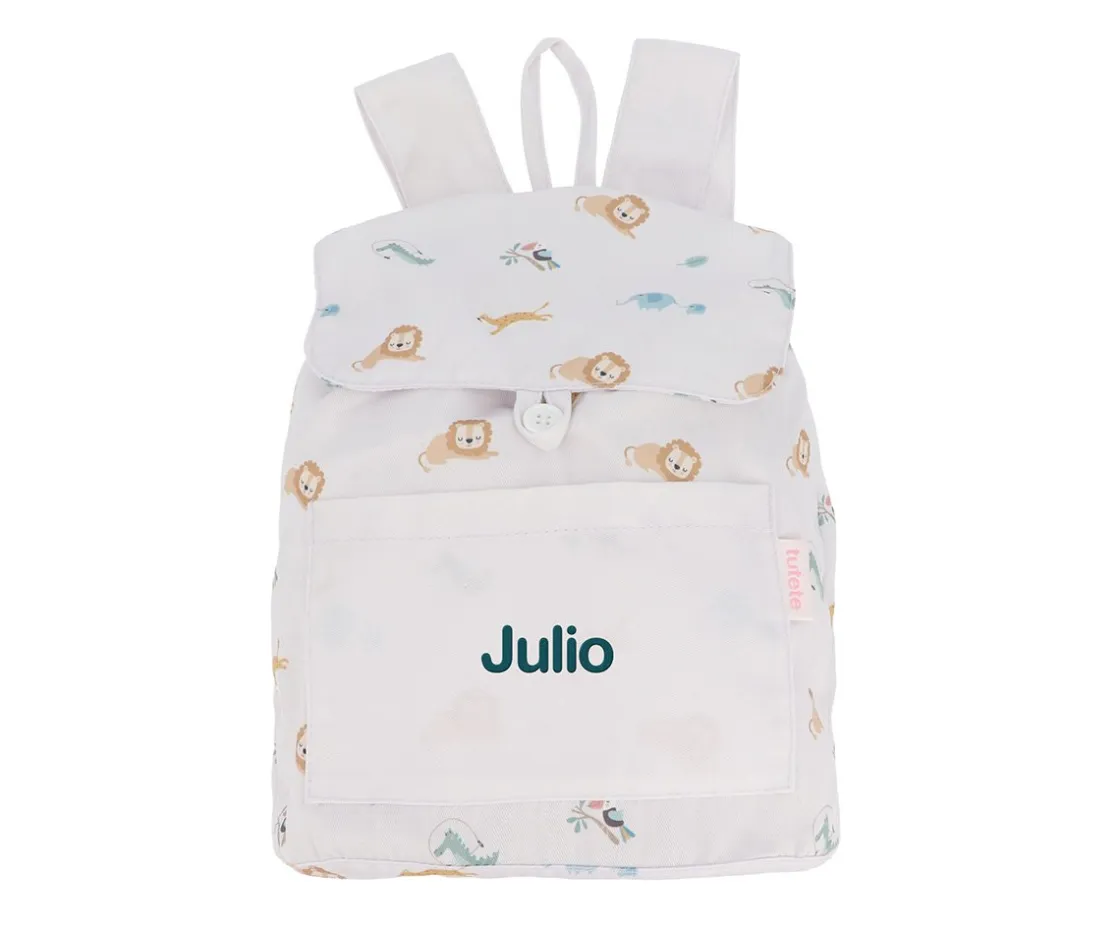 Podrás personalizar el bolsillito delantero de la mochila con el nombre de tu peque bordado.