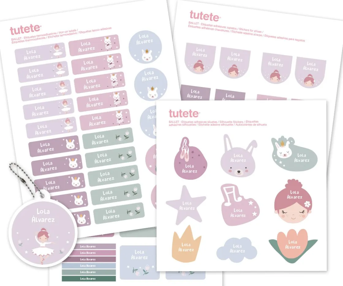 Tutete trae este pack súper práctico formado por un Sello Personalizado Ballet con el nombre de tu peque y el pack Combinado Termo y Pegatinas Ballet.