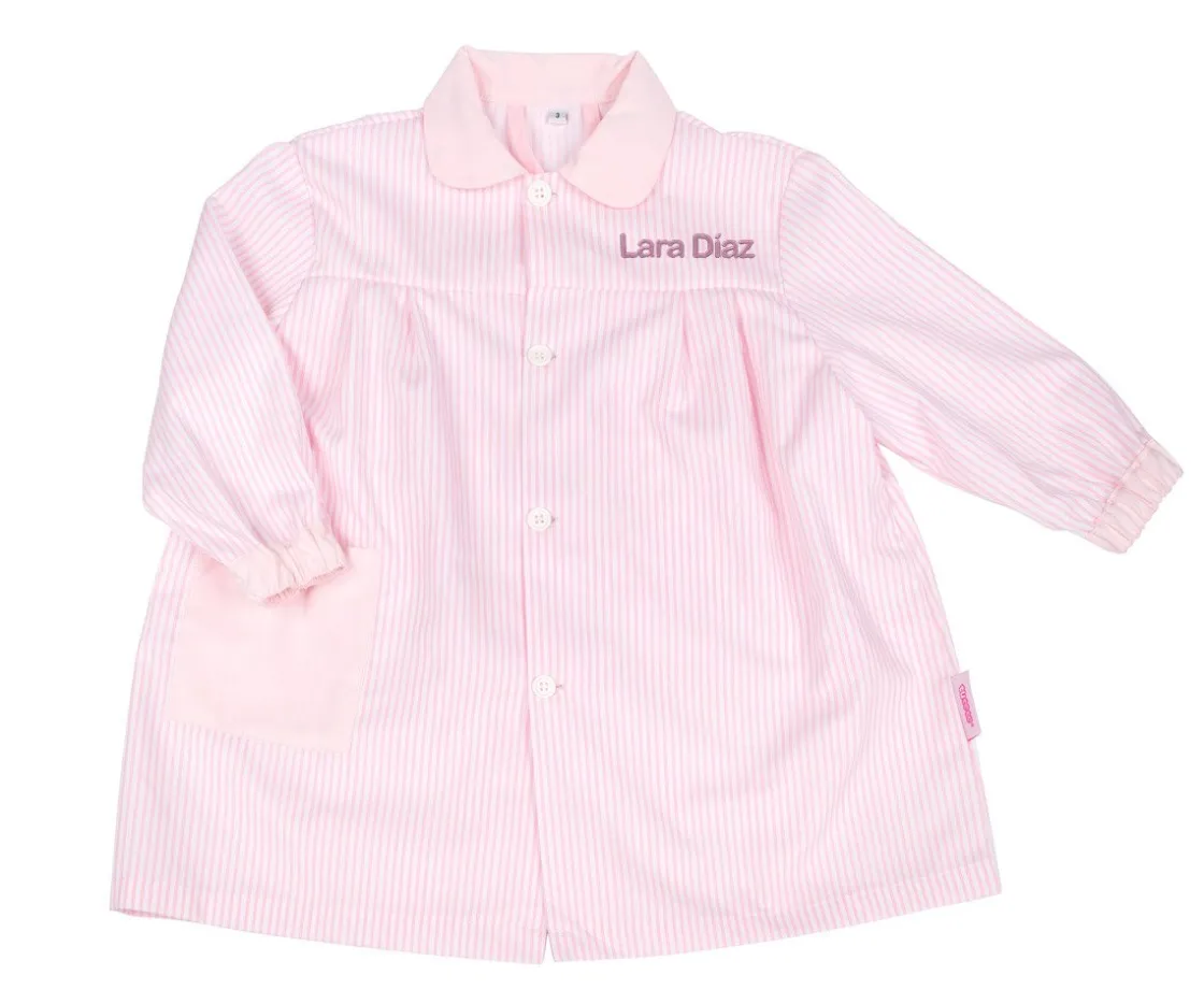 Cuello y bolsillo en color liso a juego con las rayas y una preciosa estrella en la espalda harán que no puedas resistirte a tener uno para tu peque, personalizado con su nombre.