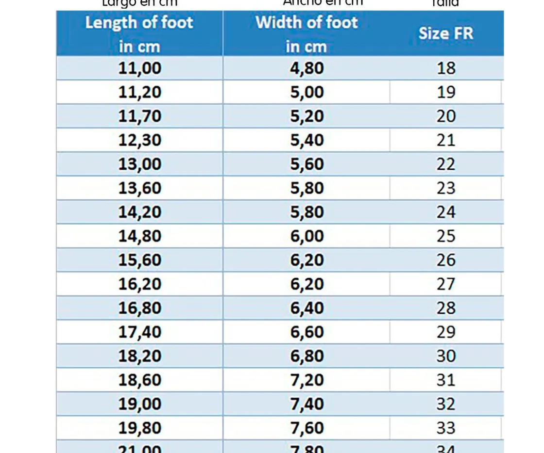 - Para elegir talla de los peques si el peque usa habitualmente la talla 22 por ejemplo en casi todos sus zapatos, como los niños deberían llevar zapatos a los que les sobre 1 cm o 1.5 cm en la punta para su correcto crecimiento de pie, recomendamos una talla más