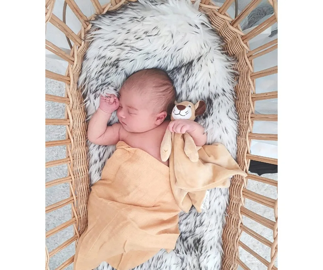 Con una bonita cabeza de león, envuelta en una suave mantita cuadrada, es ideal para los más pequeños. Fácil de agarrar y sujetar por su cabecita y bracitos, se convertirá en el mejor amigo de tu bebé a la hora de dormir.