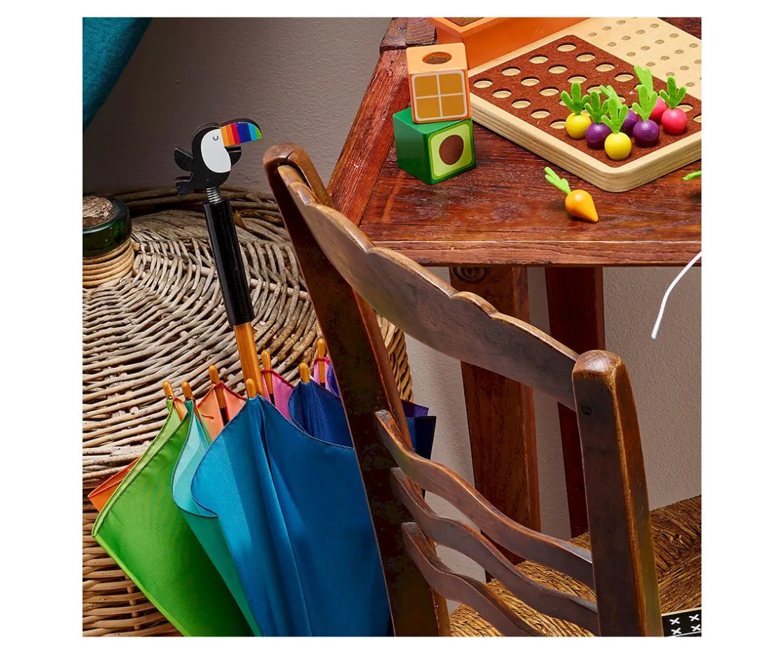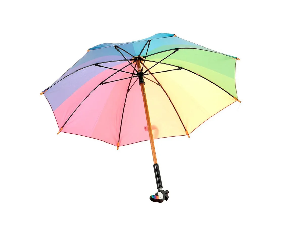 Coqueto paraguas, con mango con la cabeza de una figura, para alegrar los días de lluvia.