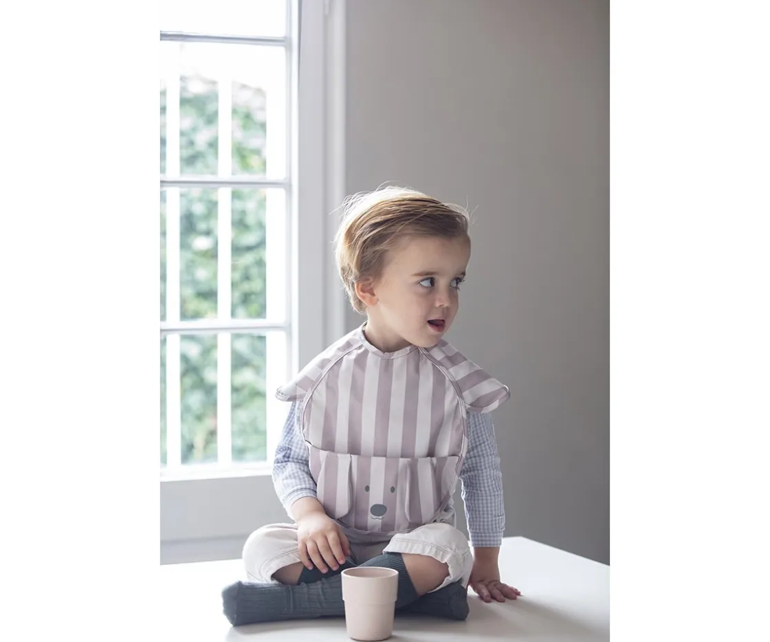 Divertido babero con manga corta impermeable de Walking Mum, ideal para bebés de 6 meses a 3 años. Con diseño unisex, ofrece máxima protección y un bolsillo recogemigas en forma de un divertido perrito. Hecho de material impermeable, fácil de limpiar y perfecto para comidas, BLW y manualidades.