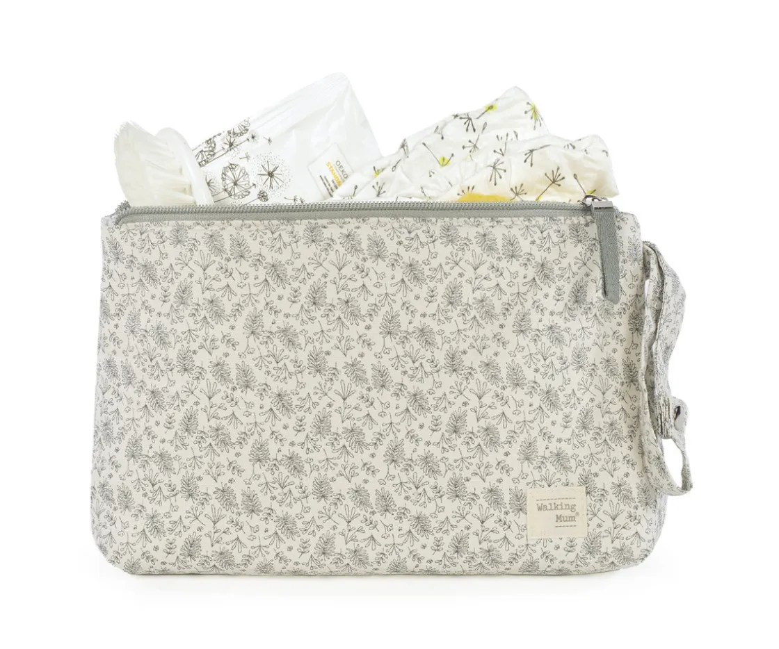 Neceser muy práctico de la colección Gala Mint de Walking Mum, para llevar todos los productos de aseo de tu bebé. Tiene un cierre seguro de cremallera para evitar que algo pueda salirse.