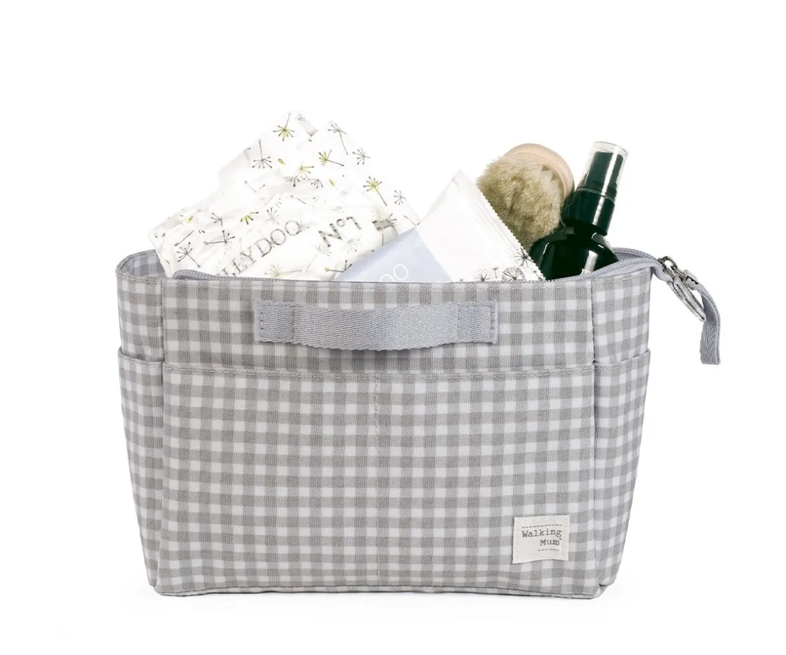 Neceser muy práctico de la colección I Love Vichy de , para llevar todos los productos de aseo de tu bebé. Cuenta con asas ubicadas en la parte superior para cargar el bolso y tiene un cierre seguro de cremallera para evitar que algo pueda salirse.