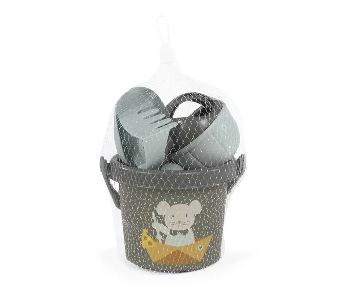 Este set de playa de la colección de Walking Mum, incluye todo lo necesario para horas de juego al aire libre: cubo, regadera, pala, rastrillo y 4 moldes, para crear figuras en la arena.