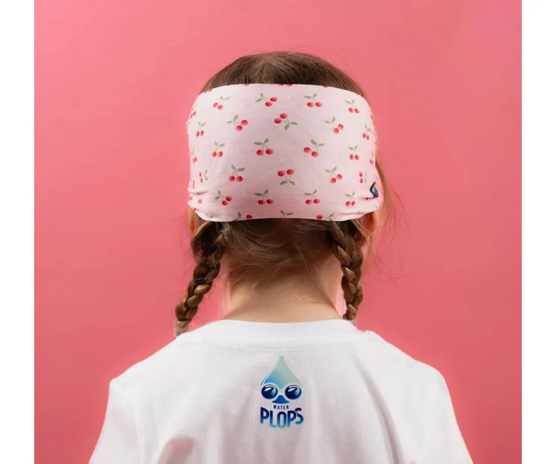 Las gafas de natación Waterplops con estampado de cerezas están diseñadas especialmente para niños y niñas desde los 3 años. Gracias a su exclusiva banda elástica suave, se colocan en segundos y no tiran del cabello, ni siquiera el rizado o con textura.